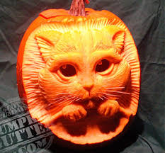 De un faraón egipcio, de Albert Einstein, de un tigre, de la estatua de la libertad, y de este tierno gatito, son algunos de los ejemplos de calabazas de Scott Cummins.